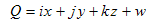 A quaternion is an abstract mathematical strukture with a bundle of defined rules, and these rules are very helpful to handle the orientation without the mentioned disadvantages. For the proposed usage in 3D programs the quaternion can defined as a 4-dimensional vector