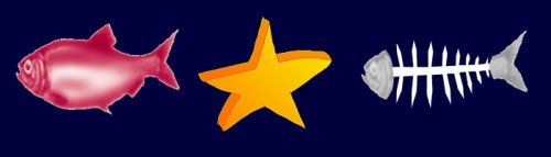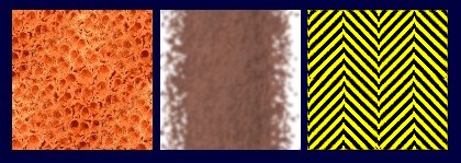 Nun ja, die linke Textur, die wohl irgendein Gestein verkörpern sollte, war nicht gerade einladend. Interessanter schon die mittlere, die dafür sorgte, dass auch auf matschigem Untergrund eine Gleitspur zurückblieb. Die Idee für die rechte Textur geht wahrscheinlich auf die Tuxracer-Version 1.1 zurück. Es ist eine Sprungmarke, die für einen kräftigen Sprung sorgt, wenn sie befahren wird. In Tuxracer 1.1 wurde dafür allerdings ein Objekt bereitgestellt. Das in PPRacer angewandte Verfahren mit der Bodentextur war nicht überzeugend, da die Überblendmethode des Quadtree eine unnatürliche Integration in das Gelände zur Folge hatte.